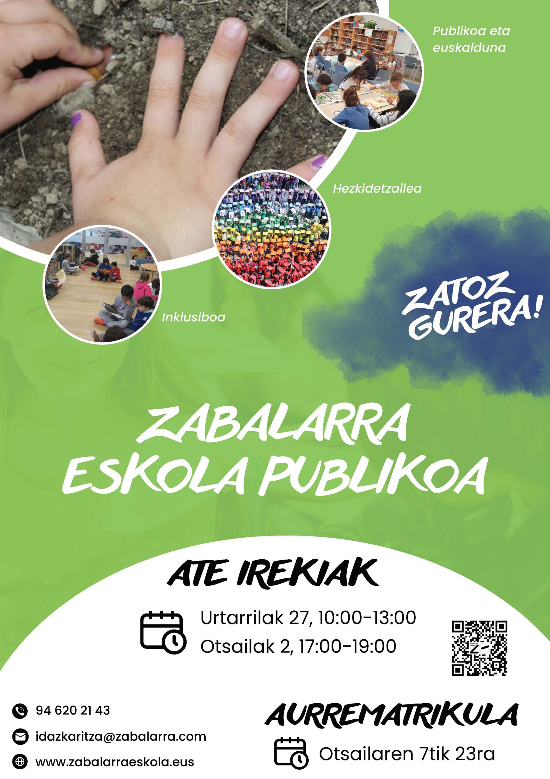 Otsailaren 7tik 23ra bitartean, zabalik egongo da 2024-2025 ikasturterako aurrematrikula egiteko epea, hori dela eta ATE IREKIEN jardunaldiak izango ditugu Zabalarra Eskolan hurrengo egunetan: