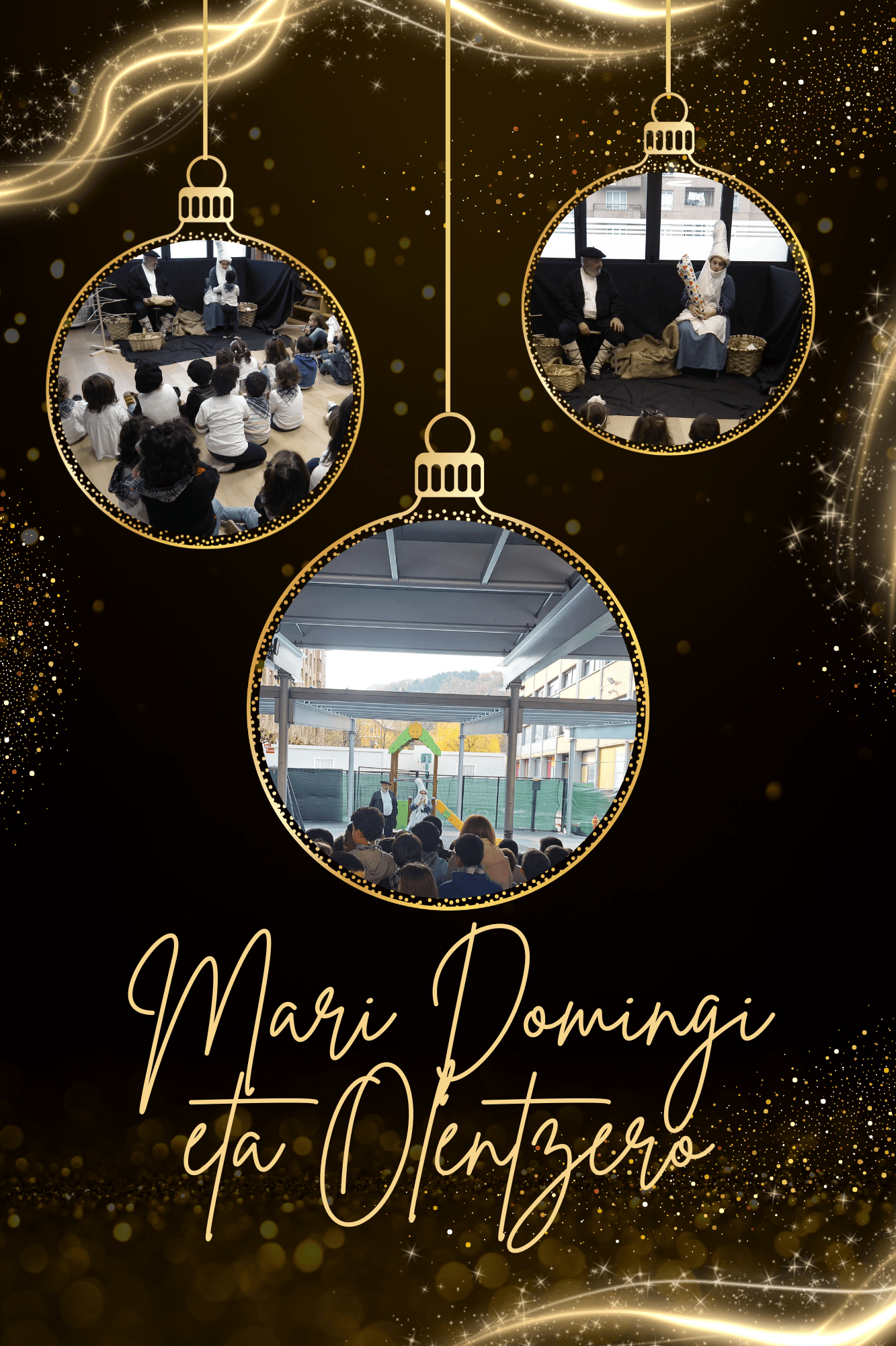 Como todos los años, nuestra entrañable Mari Domingi y nuestro querido Olentzero han pasado por la escuela antes de empezar la navidad; han repartido un montón de regalos y han escuchado con atención las canciones del alumnado de nuestra escuela.